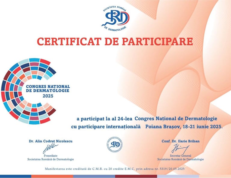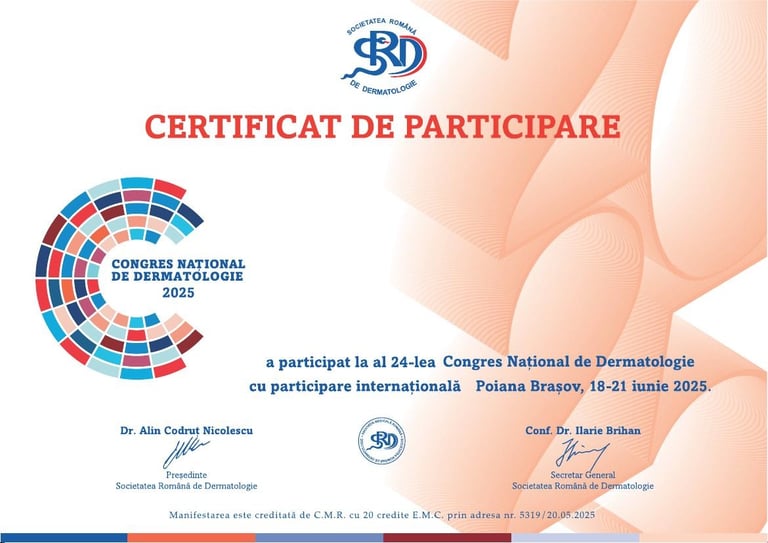 ✚ Formare continuă în video-dermatoscopie, dermato-chirurgie și dermatologie estetică