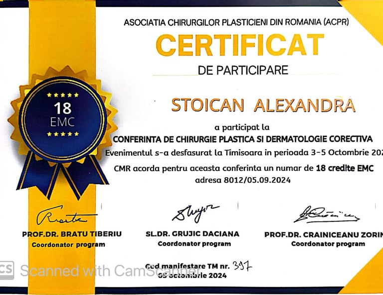 2024 - prezent: Pregătire avansată la Centrul Medical Dr. Mihălceanu sub îndrumarea doamnei Dr. Mihăița Mihălceanu în: